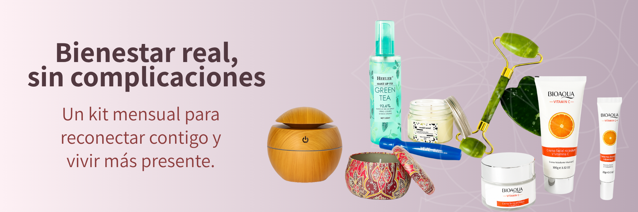 Recibe entre 3 y 5 productos pensados para ayudarte a bajar el ritmo y cultivar momentos de calma: desde artículos de autocuidado y aromaterapia, hasta elementos que transforman tu espacio en un refugio personal.